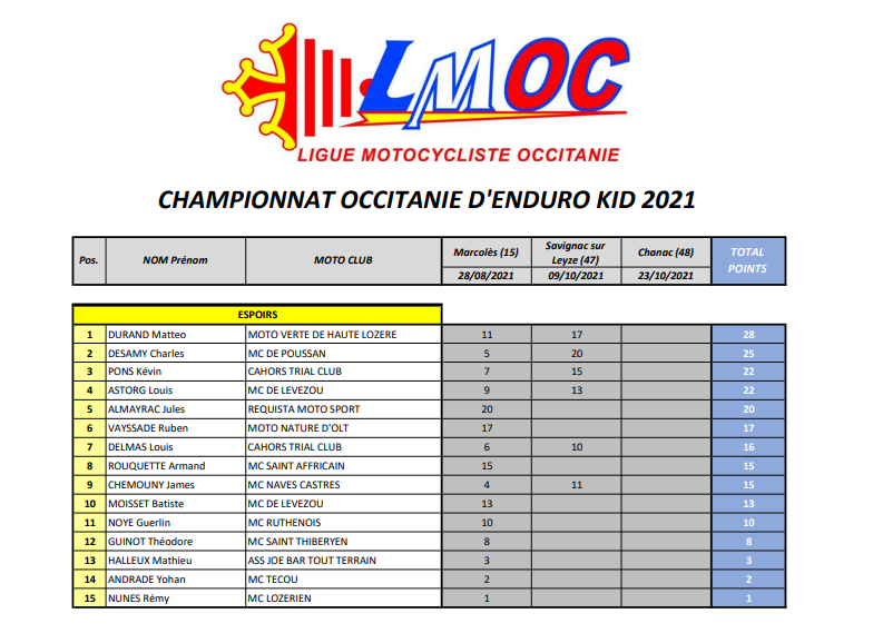 Le Samedi 23 octobre dernier, le Championnat de France d’Enduro Kid 2021 a connu son épilogue en Lozère, à Chanac plus précisément. Une épreuve où ont été attribués les titres de champions de France 2021 après une saison de bagarres intenses dans chaque catégorie.