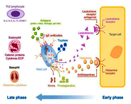 La rhinite allergique est une inflammation de la muqueuse nasale provoquée par une réaction immunitaire à des particules présentes dans l’air. Lors du contact avec l’allergène, l’organisme produit des anticorps IgE, qui entraînent la libération de médiateurs comme l’histamine responsables d’écoulement, éternuements et congestion.